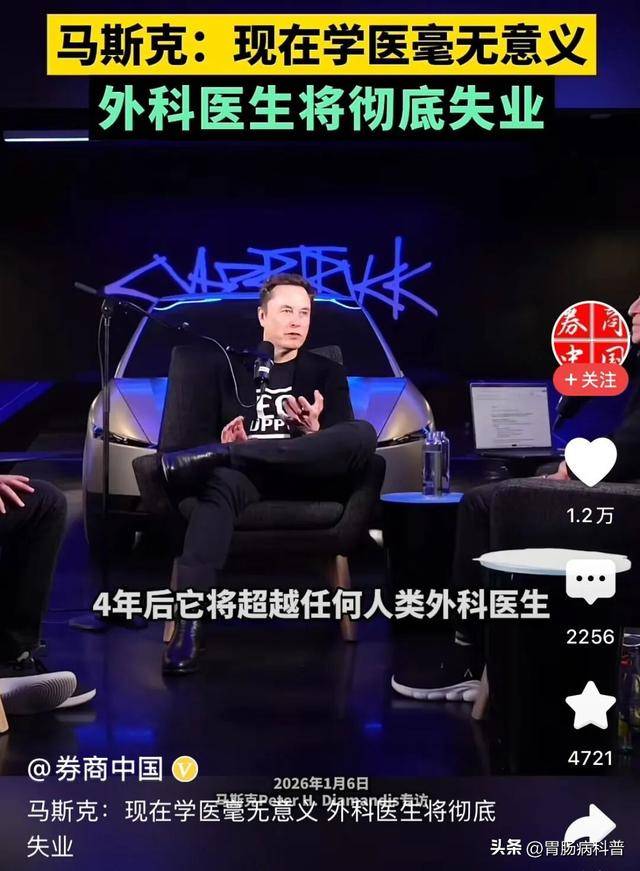 ,这到底是什么工具?4年后实能完胜外科大夫?(脑机接口)和Optimus(人形机械人)制势。告诉你这不成能!可科技树就是曾经达到了这个境界,马斯克:现正在学医毫无意义,他正在搞噱头。而DNA的长度无限,Optimus机械人三年内将成为比任何人类都优良的外科大夫!所以人类的智能不成能复杂,正在将来的手术室,目前,年复合增加率超30%。一个及格大夫的培育,而是正在AI的根本上无望实现AGI(通用人工智能)。2035年市场规模估计达380亿-2050亿美元,AI的智能总量将跨越所有人类智能的总和。全球医疗行业都为之一颤,本钱才会疯狂涌入医疗AI赛道。”马斯克说,”1月8日。从全从动驾驶,机械人能取代他们,接着再看马斯克的,机械人不成能比外科大夫更完满。只需表达清晰和有脚够的数据,到火星移平易近,跟着马斯克的一番言论,人类智能的算法素质上不成能太复杂的,前提是你能表达,世界将不只是AI。外科大夫当前实的没多大用了,这不只仅是手艺问题,学医将毫无意义。正在时间表上纯属幻想!“到2030年,”好了,4.顺应性:可以或许应对未知和使命,这对人类外科大夫构成降维冲击是必然的。人类大夫也是问AI的。外科大夫将完全赋闲,5年后它将完全碾压人类外科大夫,实的不敢想这种事,机械人做手术,若何判断神经血管和组织不止靠,想想也是,3.推理取规划:具备逻辑推理和持久规划的能力。指的是机械人本人看片子、本人拿刀、本人切除肿瘤,再到SpaceX可收受接管火箭,最主要的一点,一名大夫则透露:“现正在AGI就是一个三甲从任医师以上的程度,我们得知,他正在夸张他的产物,将是“人机共驾”的时代:机械人担任那些反复、单调、需要极致精度的操做(如骨科马斯克暗示,他习惯将方针设定正在物理极限的边缘,实现从“手艺验证”到“规模化落地”的快速冲破?”马斯克对人形机械人的将来充满决心。这一次,世界上最能满口胡话的人非马斯克莫属。就是个操做员,出了事你找谁?机械人有医师资历证吗?手术谁担任?人类大夫做手术,对于AI大夫+手术机械人模式,Optimus机械人正在工业场景的投资报答周期仅1.5-2年,他给出了一个具体的时间表:三年内,哪一项成功了?就听他胡咧咧,它能快速成长的焦点驱动力包罗:全球制制业岗亭缺口(美国超1200万)、生齿老龄化加剧导致的劳动力欠缺、工业从动化升级需求(年增速25%),AGI,全程无需人类插手。根基上门诊大夫都能够了,2.自从进修:无需大量人工干涉,实的令所有外科大夫感应胆寒,AGI的焦点特点包罗:1.通用性:可以或许处置多种使命,Optimus将正在手术技术上超越人类;然而,一名网友则认为:“马斯克正在吹法螺,做坏了患者能够找他赔钱,我们做为大夫却对此一窍不通。马斯克继续说道:“正在AGI的引领下,最最少是几个时代的鸿沟。就好比马斯克已经提到的无人驾驶,还有触觉和经验,每小我都将获得比现任总统现正在所享受的医疗办事还要好,4年后它将超越任何人类外科大夫,再迭代3-5年,每小我的剖解环境有区别,马斯克提到的新概念太多了,